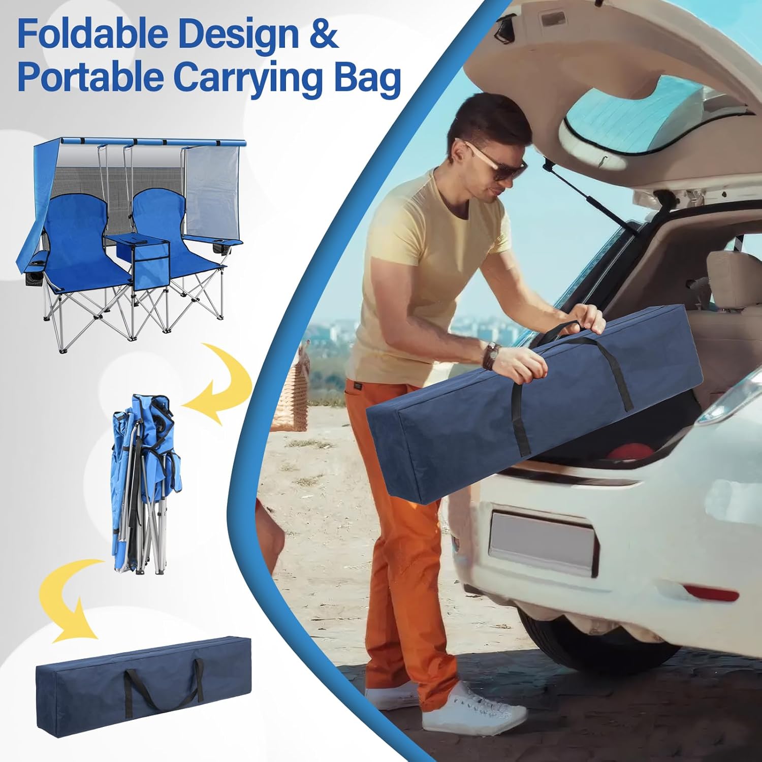 La silla de exterior con toldo se puede usar como silla de playa, silla de camping, silla de pesca, silla de senderismo, silla de picnic, silla de jardín o silla de viaje, según tus necesidades. Es la compañera perfecta para tus acampadas familiares, fiestas, etc.